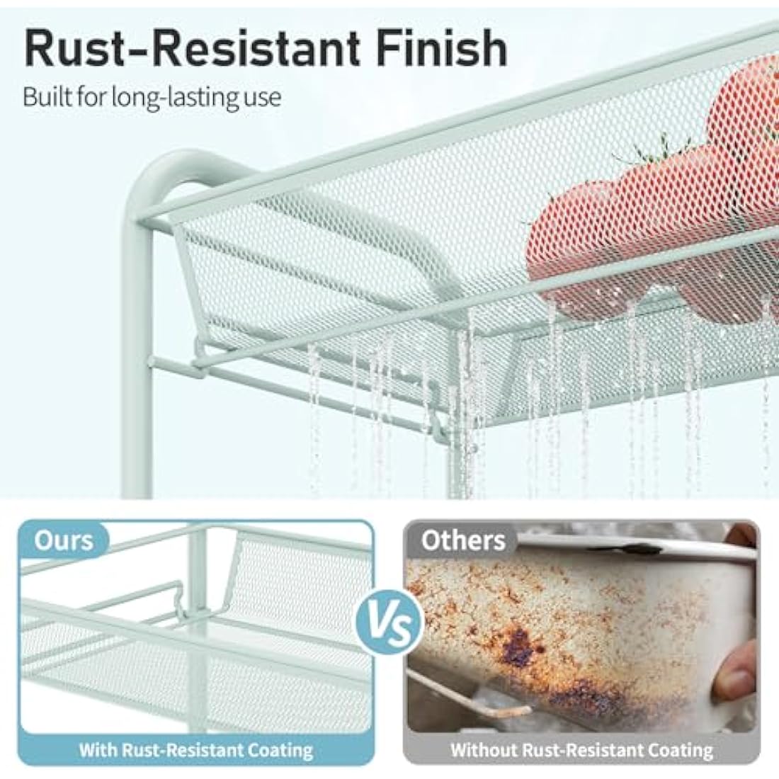 APEXCHASER 3-Tier Rolling Cart,Easy Assemble Mobile Storage Trolley On Wheels,Slide Out Utility Cart Shelving Units Kitchen Bathroom Laundry Room,Green