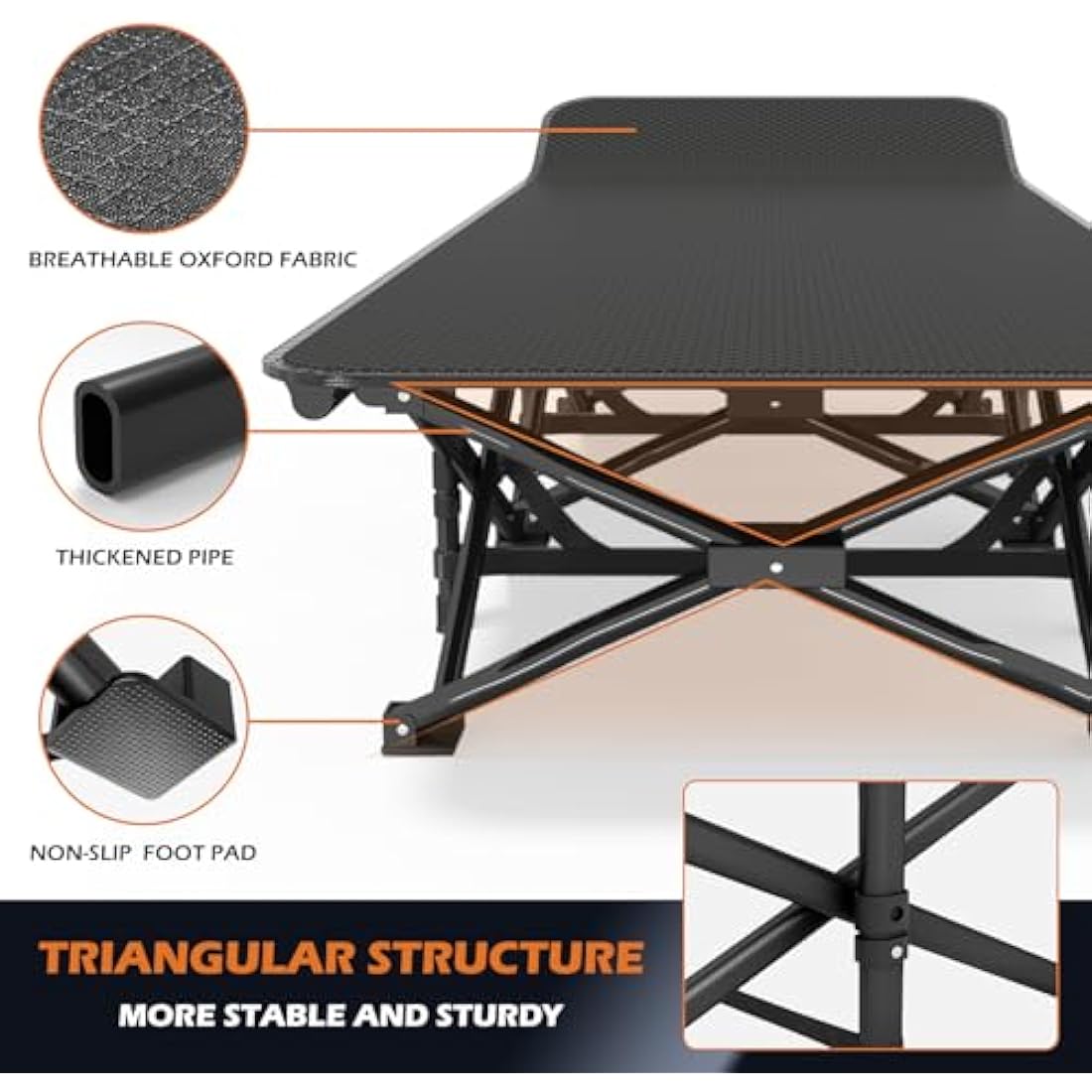 ATORPOK SHOP Camp Beds for Adults with Cushion, Comfortable Travel Camping Cot for Sleeping, Portable Tent cot with Carry Bag Supports 450 lbs (Black)