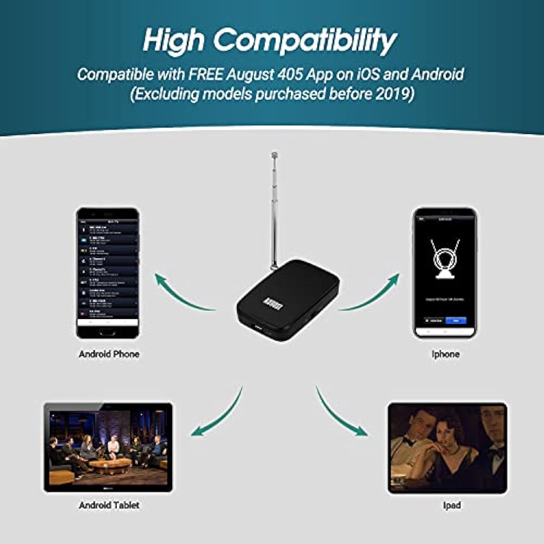 August DVB-T405 1080p Portable Freeview TV for iOS and Android - Watch and Record Live Freeview on Phones and Tablets/No Mobile Data or WiFi Required - Rechargeable Battery