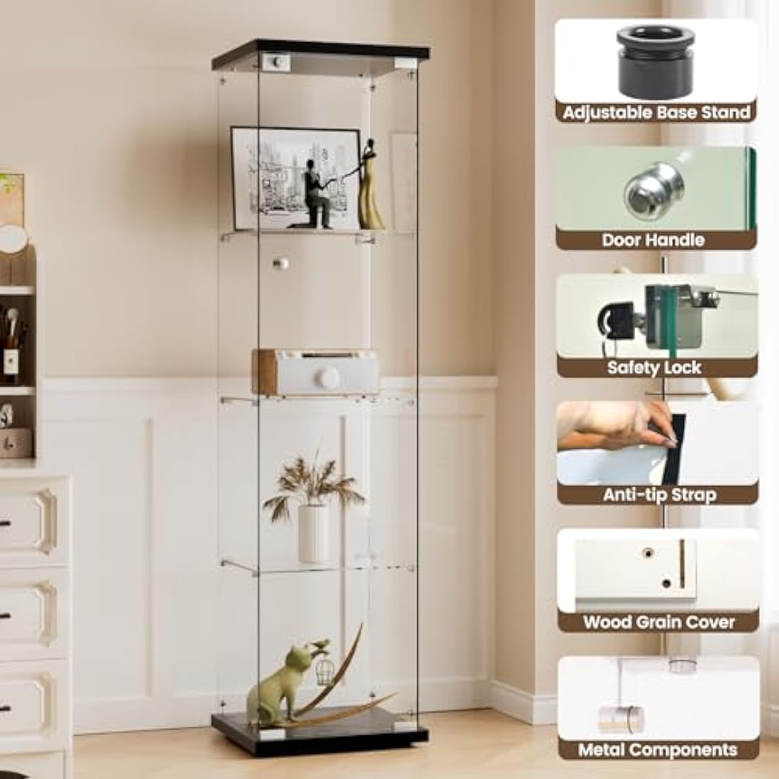 Quick Installation in 30 Mins - The clear glass cabinet has been upgraded and redesigned to make installation even easier and more user-friendly than before. With clear and concise installation instructions and all the necessary parts, you can quickly and easily assemble your display cabinet without any prior experience or professional assistance. We present anti-tip device device, use it to ensure your safety