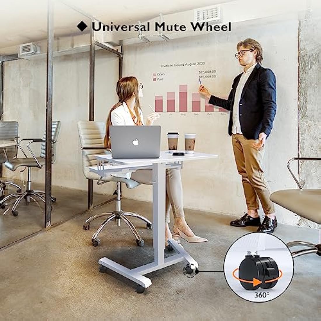 Ergonomic Design: The mobile standing desk has a 65*45 cm desktop can easily accommodate a laptop, a 24.5mm long slot can hold your PAD, phone, pens, etc. Its 9.5cm high base can also serve as a side table in the living room, in the bedroom or a temporary desk in any situation.