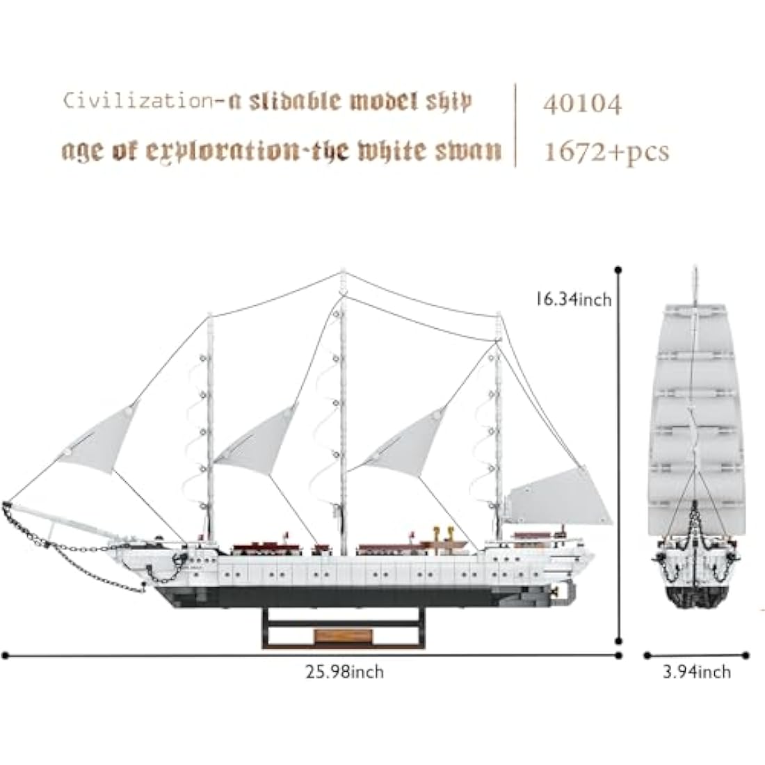 JMBricklayer Pirate Ship Building Blocks Set 40104, White Swan Ship Model Construction Toys, Collectible Pirate Ship Model Kits, Ship Model Birthday Gifts for Kids, Boys & Girls (1672 Pieces)