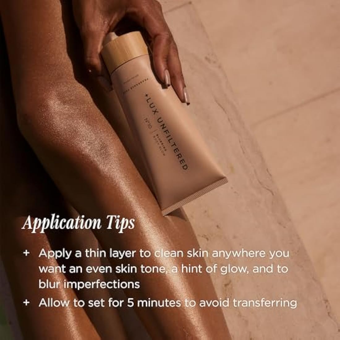 + Lux Unfiltered N°10 Blurring Body Glow Lotion - Instant Body Shimmer Lotion that Blurs Imperfections and Hydrates with Shea Butter, Squalane & Vitamin C - Vegan, Cruelty Free, Fragrance Free