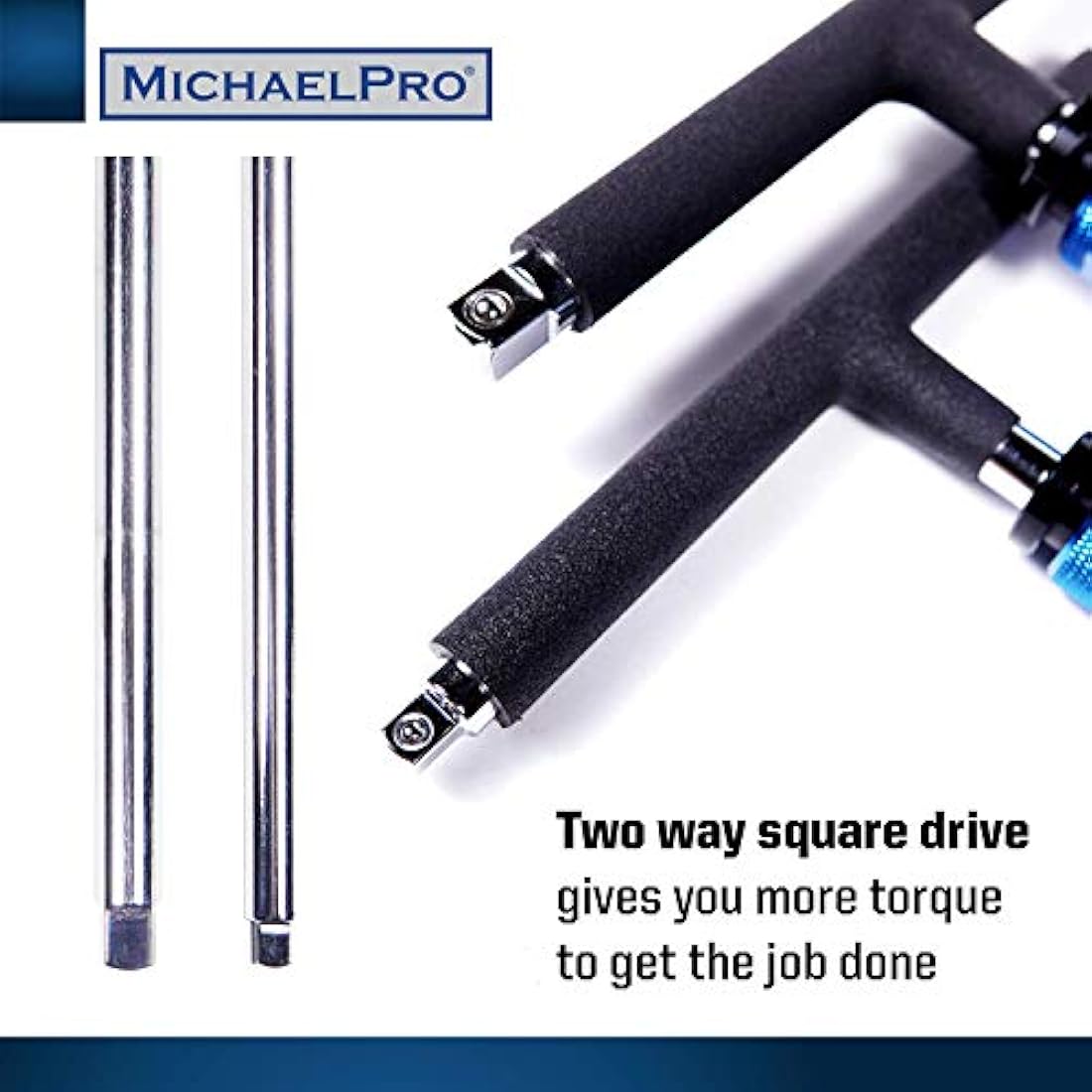 MichaelPro T Bar Wrench Set 1/4" & 3/8" Drive 2 Way Speed Adjustable T Handle Spanner Set, Patented Design with Spinner Handle, 3 Level Grip Positions, Socket Spanner MP009015