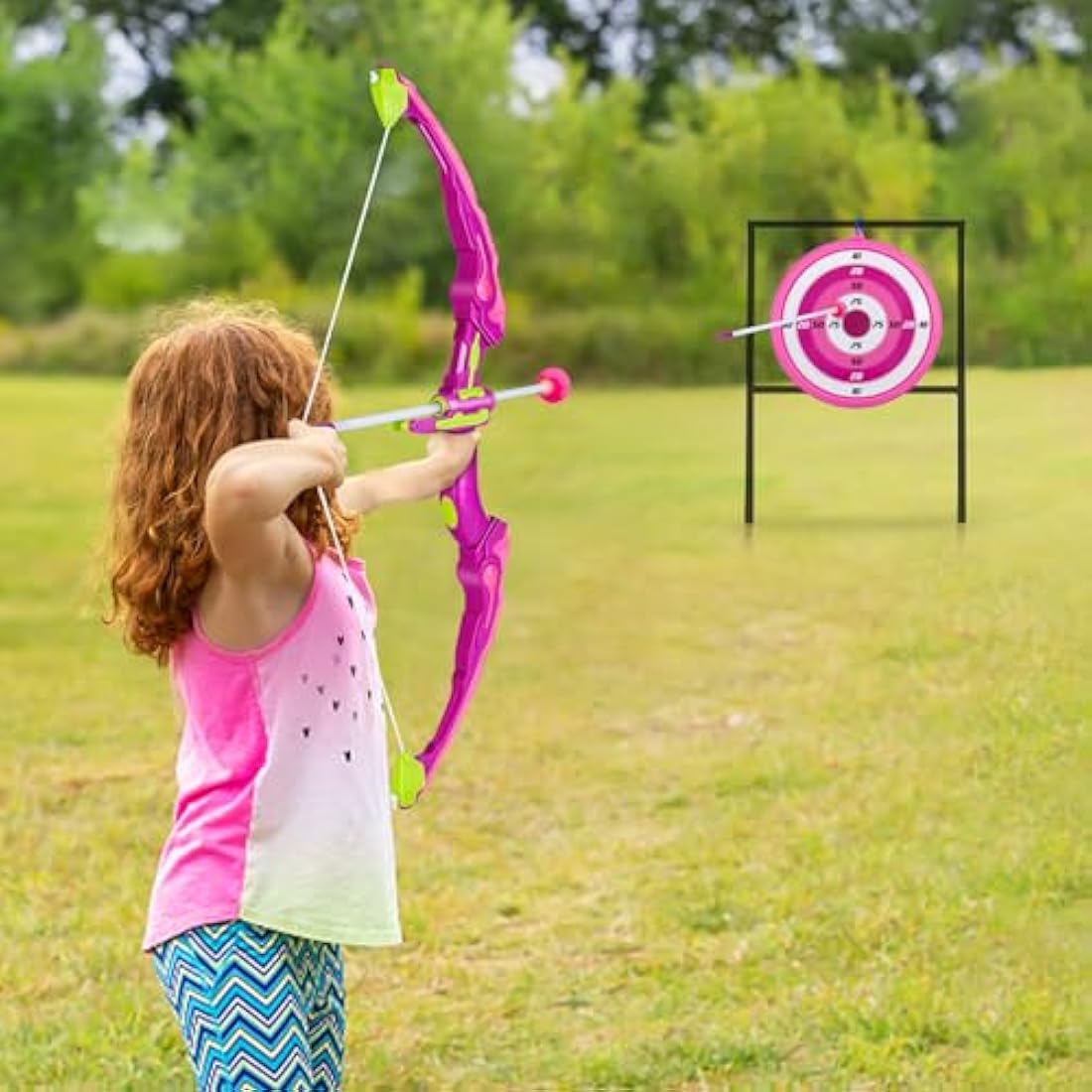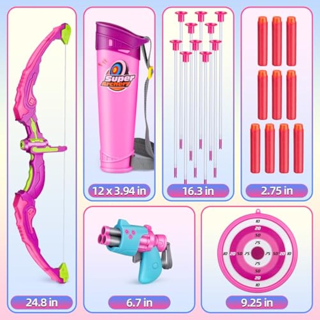 Own1one Kids Bow and Arrow Set for Girls with LED Lights, 2 in 1 Archery Set Includes 1 Bow, 10 Suction Cup Arrows & 1 Quivers, Indoor and Outdoor Toys Gifts for Girls Ages 4 5 6 7 8 Years Old (Pink)