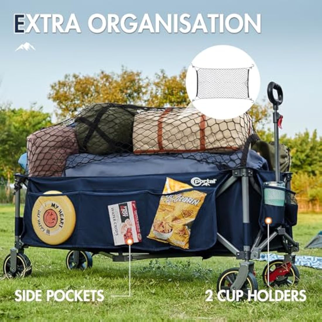 Portal 400L Festival Trolley on Wheels XXL Extended with Brakes Camping Trolley Cart Heavy Duty Beach Wagon Longer Pull along Collapsible Garden Cart Hand Truck Trailer Buggy for Fishing Picnic 160KG