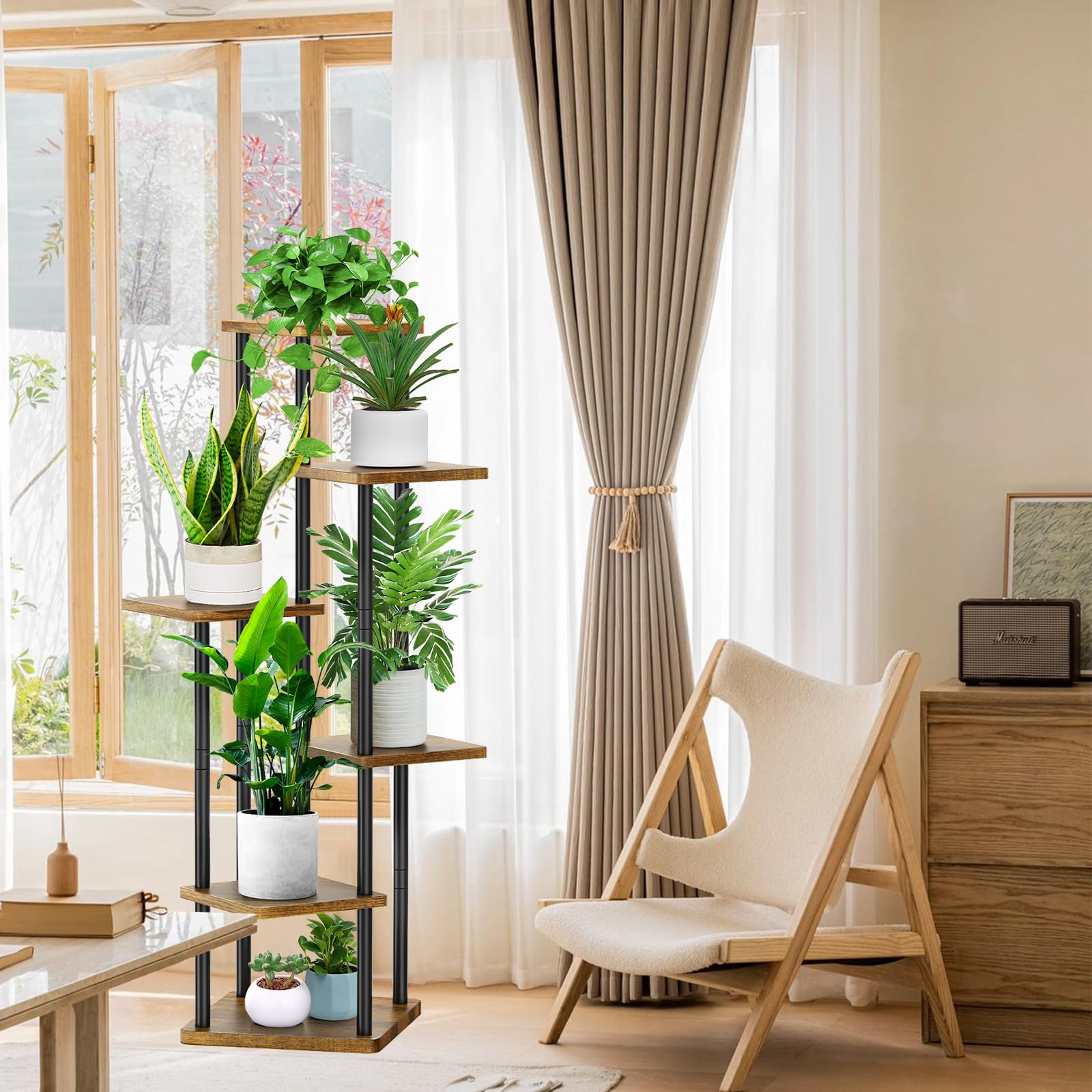 YOCOMEY 6 Tier Wood Tall Plant Stand Metal Rack Indoor, Multiple Flower Pot Holder Shelves Corner Rack, Planter Shelf Display Rack Storage Organizer